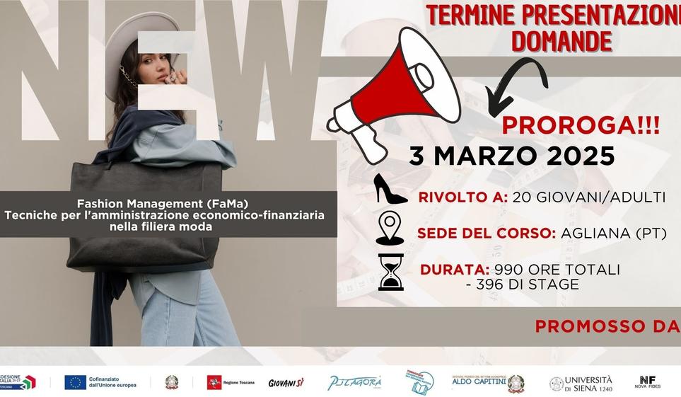 L’AGENZIA PITAGORA S.R.L. TRAINING CENTER accreditamento regionale n°OF0080, capofila di A.T.S con FONDAZIONE CONSERVATORIO SAN GIOVANNI BATTISTA, I.T.C. CAPITINI, UNIVERSITÀ DI SIENA, LANIFICIO NOVA FIDES SPA, in attuazione dell’Avviso pubblico per il finanziamento di percorsi di Istruzione e Formazione Tecnica Superiore (I.F.T.S.) Multifiliera, a valere sul PR FSE+ 2021-2027;, a seguito dell’ammissione a finanziamento, con decreto n. 12415 del 27/05/2024, organizza il corso gratuito di Istruzione e Formazione Tecnica Superiore (IFTS) – filiera Moda